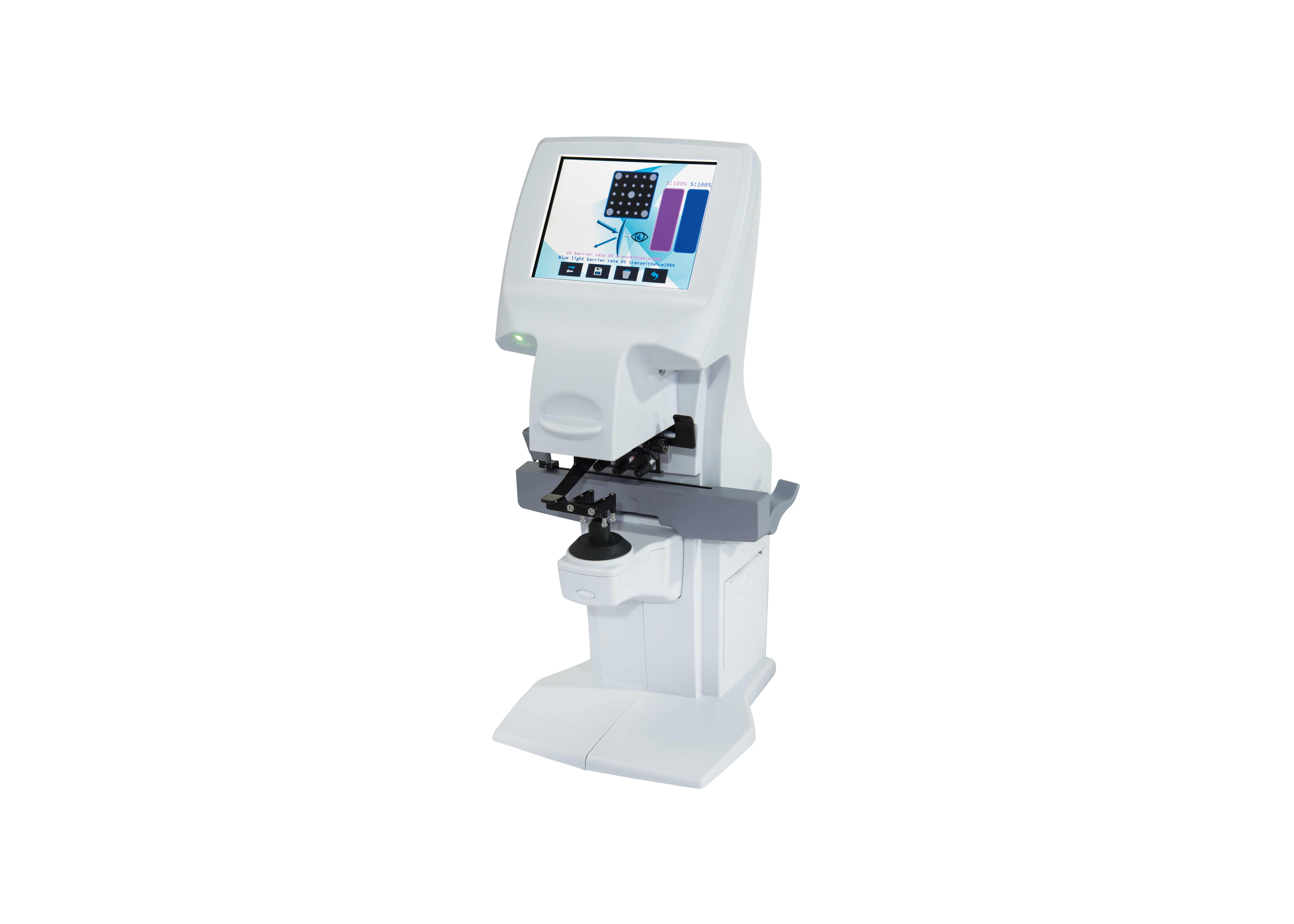 - Lenstestapparaat: automatische lensmeter, UV-tester, blauwe blokkerende lensmeter, spanningsmeter, enz.